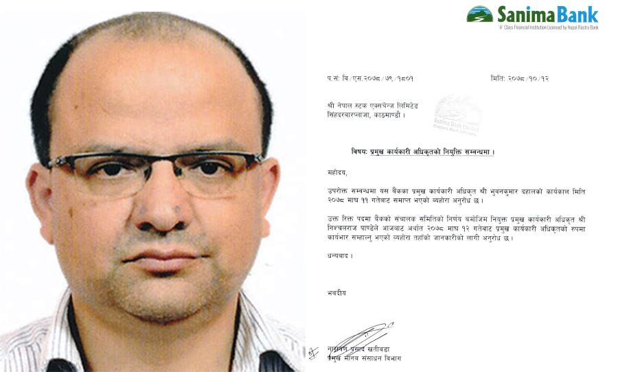 सानिमा बैंकको नवनियुक्त सिइओ निश्चलराज पाण्डेद्धारा पदभार ग्रहण