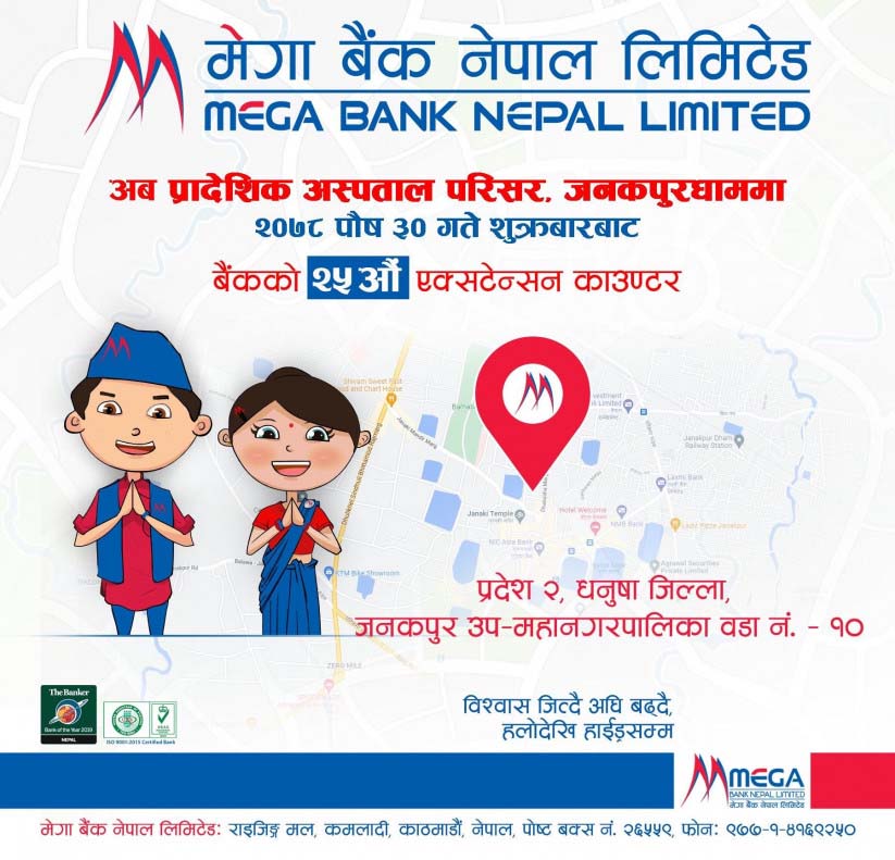 मेगा बैंकको २५ औं एक्सटेन्सन काउन्टर जनकपुरमा