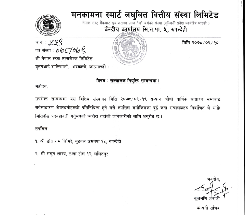 मनकामना स्मार्ट लघुवित्तद्धारा दुईजना संचालक चयन