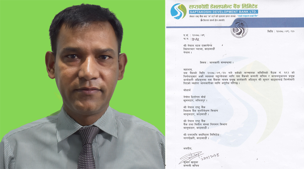 सप्तकोशी डेभलपमेन्ट बैंकको का.मु.सिइओको जिम्मेवारी कुमार खड्कालाई