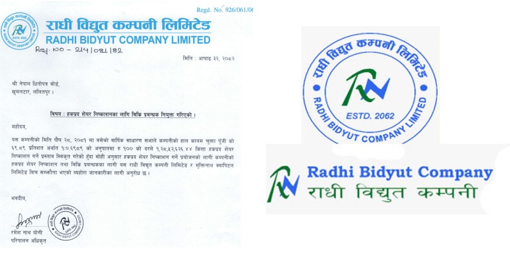 राधी विद्युत कम्पनीले ६९.८९ प्रतिशत हकप्रद ल्याउने