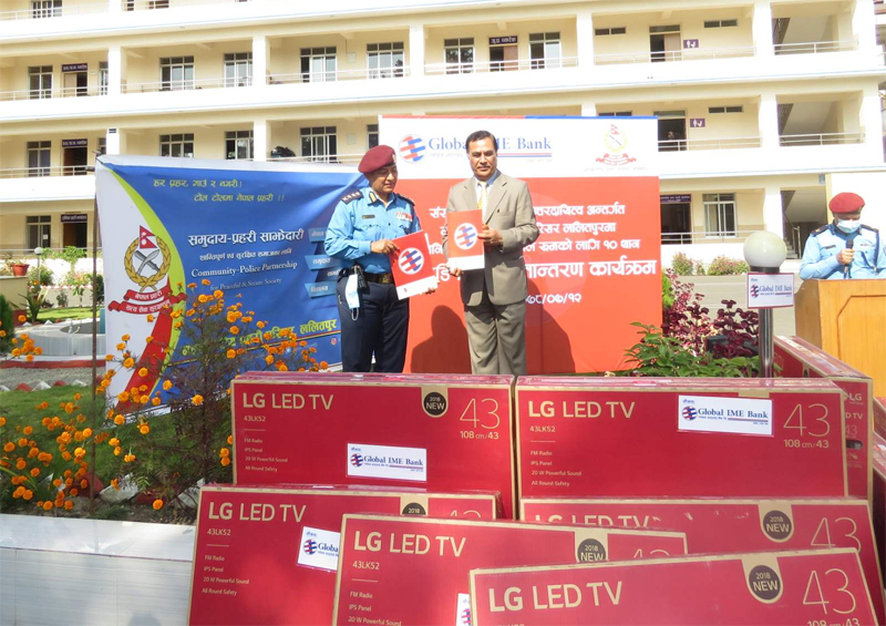 ग्लोबल आइएमई बैंकले महानगरीय प्रहरीलाई एलइडी टेलिभिजन हस्तान्तरण