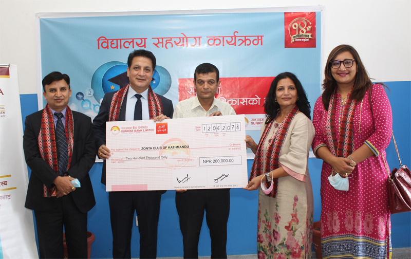 काठमाडौं । सनराइज बैंकले आफ्ना १४ औं बार्षिक उत्सवको अवसर पारि दरबार हाई स्कूल अन्तर्गत संस्कृत माध्यमिक विद्यालयका शिक्षकहरुलाई ल्यापटप खरिद गर्न जोन्ता क्लबलाई २ लाख रुपैयाँ सहयोेग गरेको छ । उक्त रकम बैंकका प्रमुुख कार्यकारी अधिकृत सुमन शर्माले...