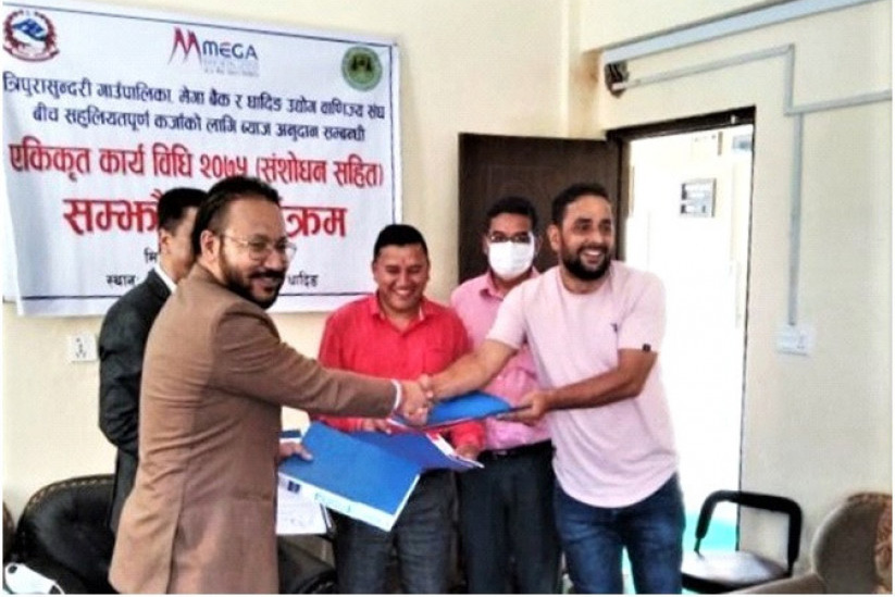 मेगा बैंकद्धारा सहुलियतपूर्ण कर्जाका लागि त्रिपुरासुन्दरी गाउँपालिका र उद्योग वाणिज्य संघ धादिङसँग सम्झौता