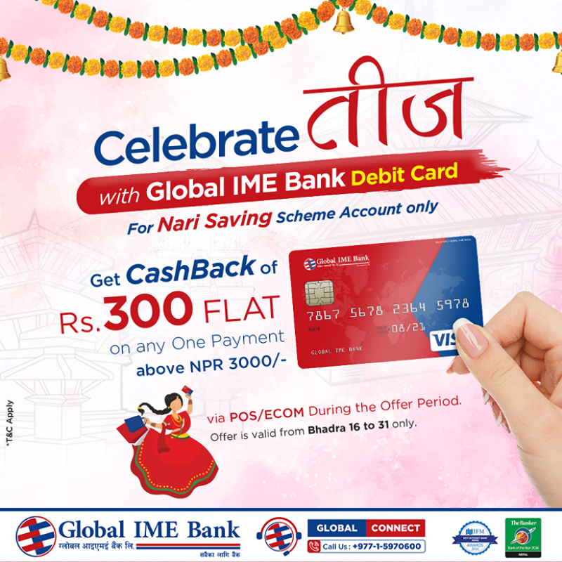 ग्लोबल आइएमई बैंकद्धारा तीज क्यासब्याक योजना सार्वजनिक, के के छन सुविधा ?