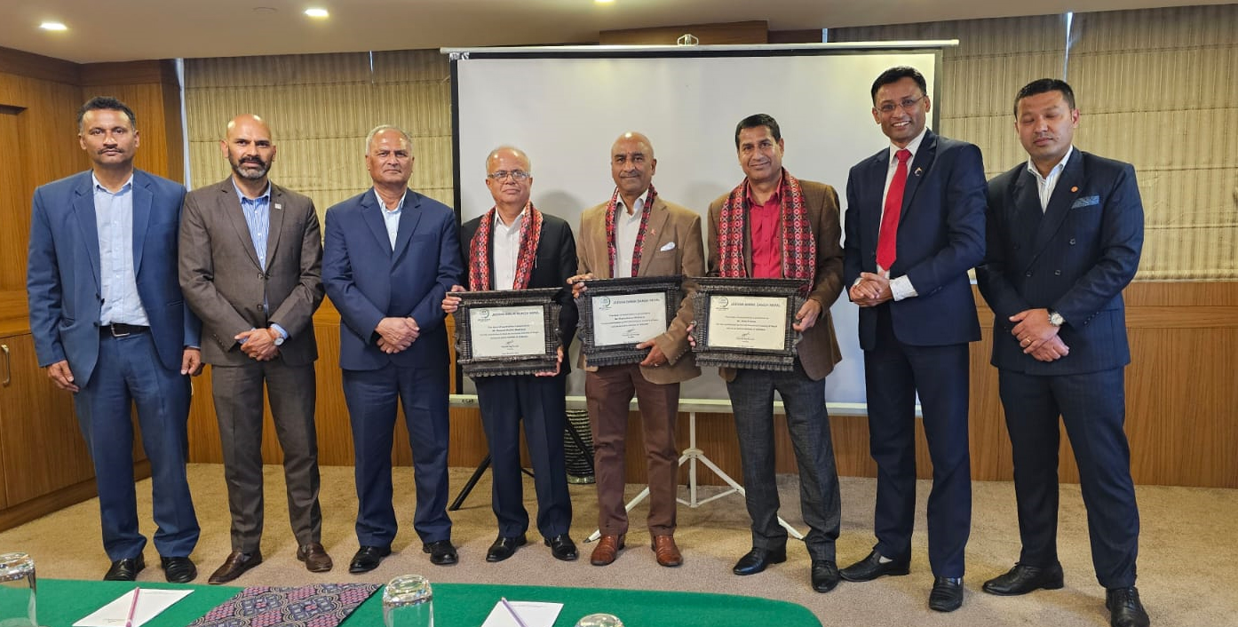 बीमा क्षेत्रमा योगदान पुर्याउने पाँच पूर्व सिईओलाई जीवन बीमक संघ नेपालद्धारा सम्मानित