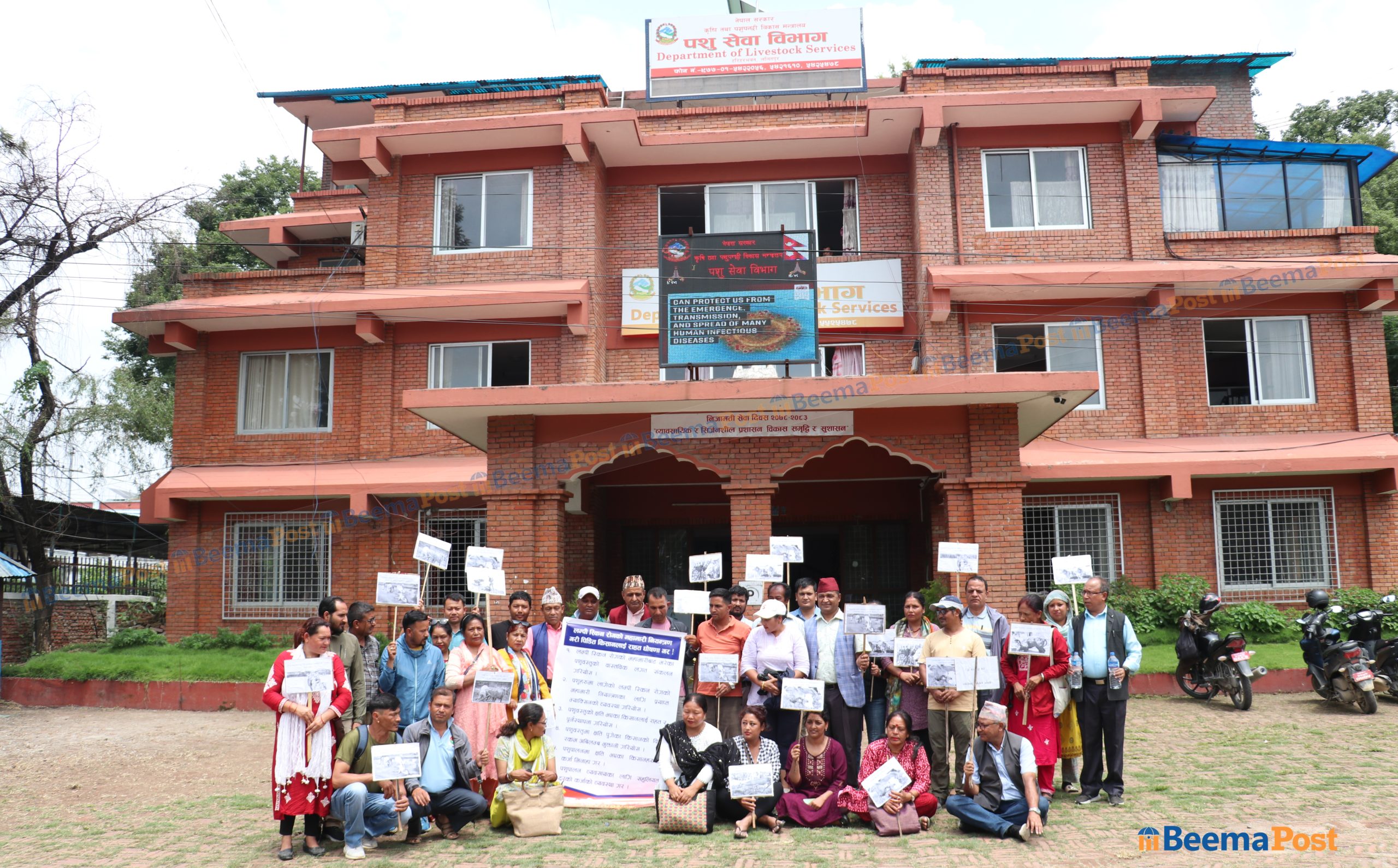 बीमा कम्पनीले दावी भुक्तानी नदिएपछि लम्पीस्कीन पीडित किसान आन्दोलित, पशु सेवा विभागमा धर्ना