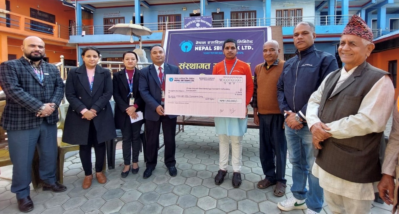 नेपाल एसबिआई बैंकद्धारा श्री गायत्री बेद बेदाङ्ग संस्कृत विद्यालयलाई आर्थिक सहयोग हस्तान्तरण