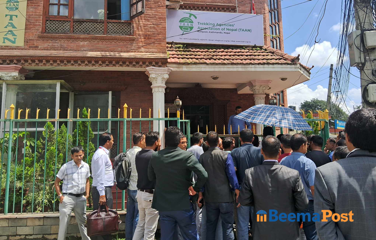काठमाडौँ । ट्रेकिङ व्यवसायीहरुको छाता संगठन ट्रेकिङ्ग एजेन्सी एसोशियन अफ नेपाल (टान) को नयाँ कार्यसमितिको लागि मनोनयन दर्ता गर्ने क्रममा विवाद उत्पन्न भएको छ । संस्थापन पक्षले आफू एक्लै मनाेनयन गर्न कार्यालयकाे ढाेकामा भित्रबाट ताला लगाएर मनाेनयनकाे प्रयास भईरहेकाे...