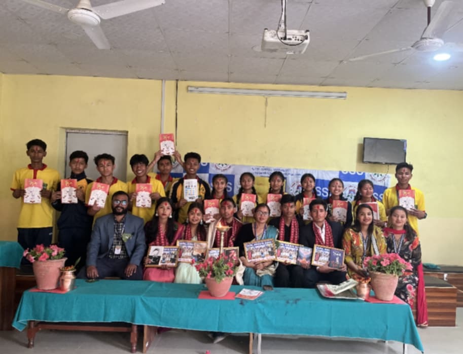 कक्षा १० का विद्यार्थीलाई पुस्तक आदानप्रदान गर्दै विदाइ