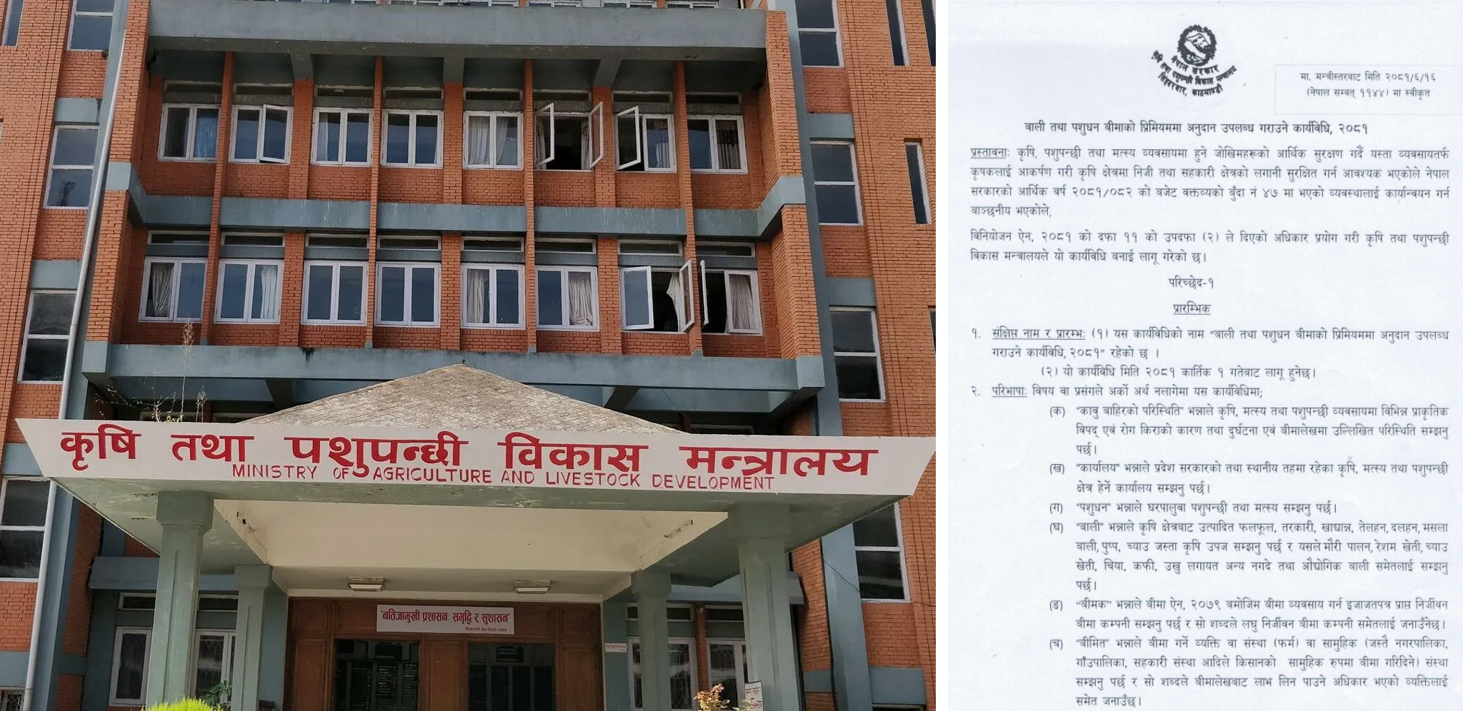 कृषि तथा पशुपंक्षी मन्त्रालयद्वारा बाली तथा पशुपंक्षी बीमा शुल्क अनुदान सम्बन्धी कार्यविधि जारी (कार्यविधि सहित)