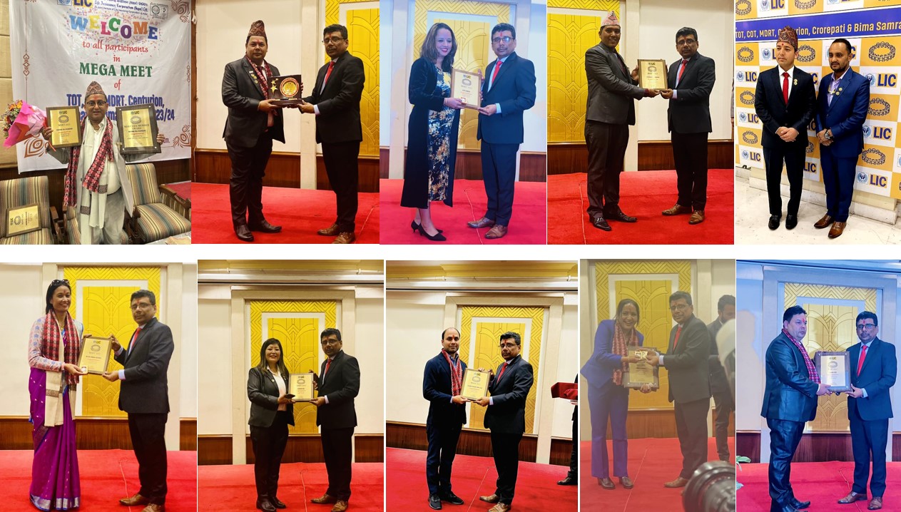 एलआईसी नेपालका टप पर्मफर अभिकर्ताहरुको भव्य सम्मान, तीन जनालाई एमडिआरटी लाइफटाईम अवार्ड, १४ जनालाई बीमा सम्राटको उपाधी