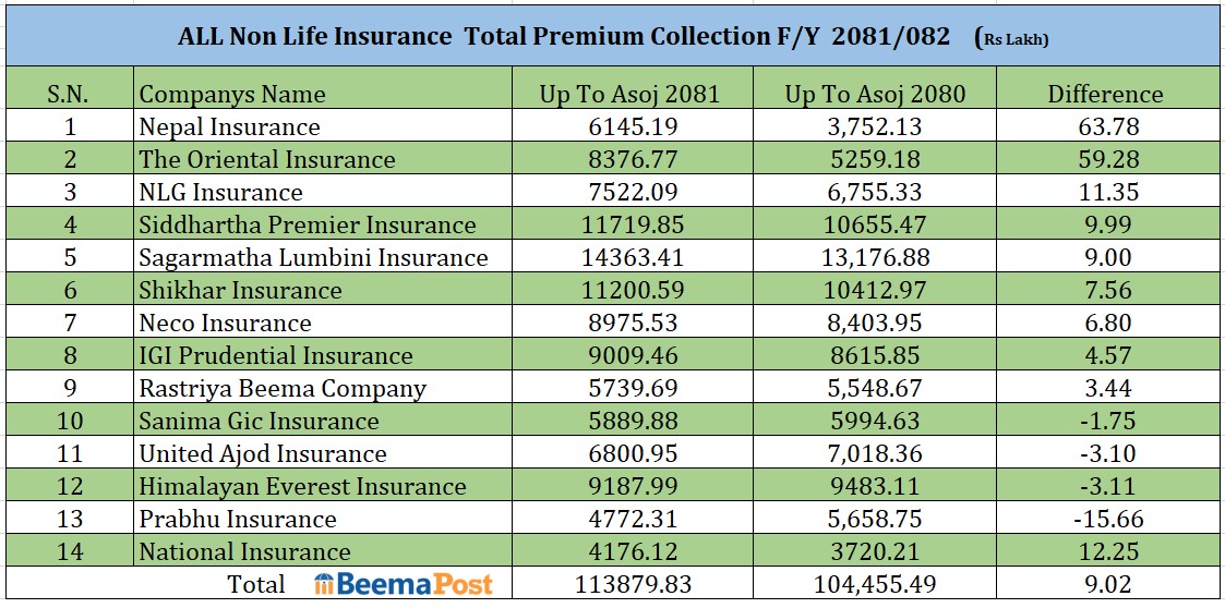 निर्जीवन बीमा कम्पनीको व्यवसाय ९ % ले बढ्यो, बृद्धिदरमा नेपाल इन्स्योरेन्स र ओरियण्टल अगाडि (सूचीसहित)
