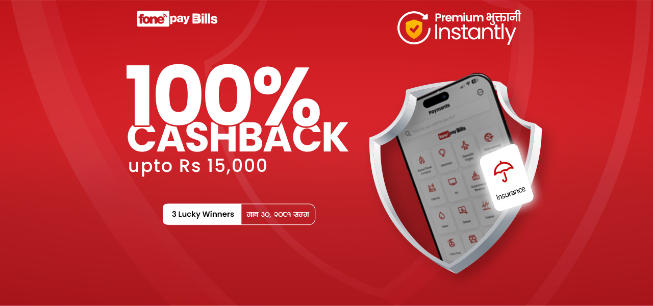 काठमाडौँ । फोनपे बिल्सले ग्राहकहरूलाई मोबाइल बैंकिङ एप मार्फत बीमा प्रीमियम तिर्न प्रोत्साहित गर्न रोमाञ्चक अभियान सुरु गरेको छ। यस अभियान अन्तर्गत तीन भाग्यशाली विजेताले आफ्नो बीमा प्रीमियम तिर्दा १०० प्रतिशत क्याशब्याक (रु। १५,००० सम्म) प्राप्त गर्नेछन्। माघ ३०...