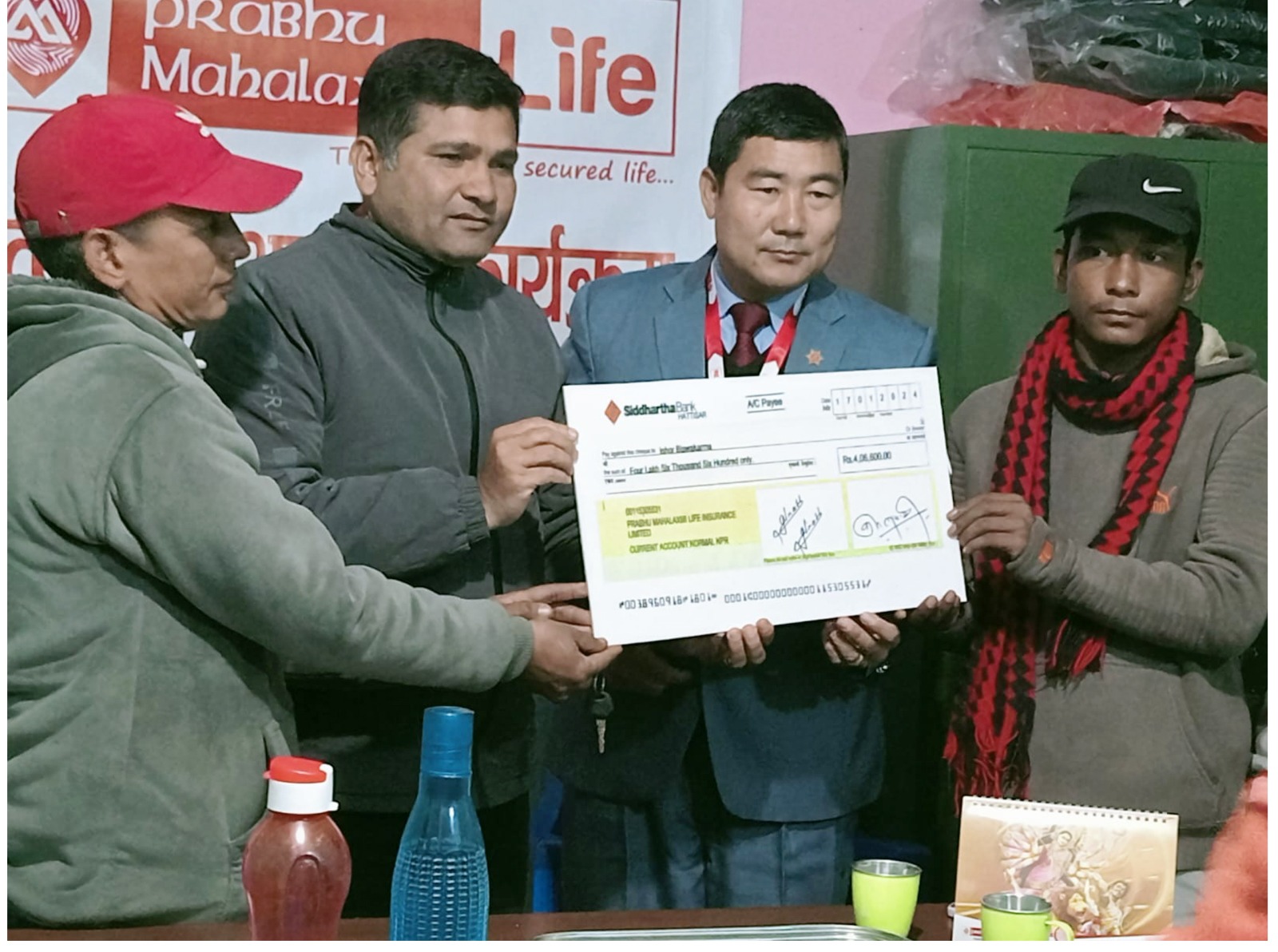 प्रभु महालक्ष्मी लाइफद्वारा बीमा दावी भुक्तानी, विश्वकर्माका आश्रित परिवारमा राहत