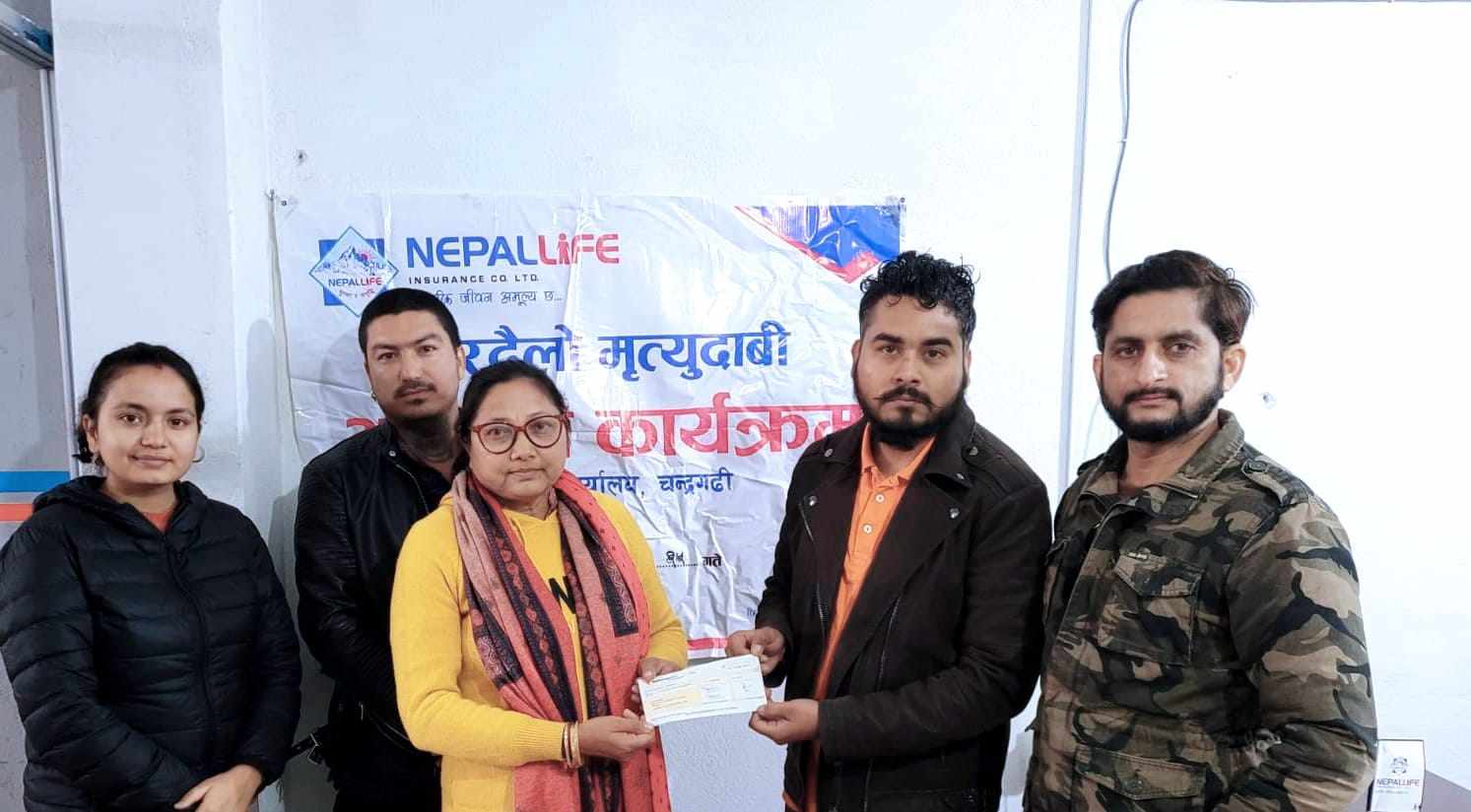 नेपाल लाइफको चन्द्रगढी उपशाखाद्वारा बीमा दाबी भुक्तानी