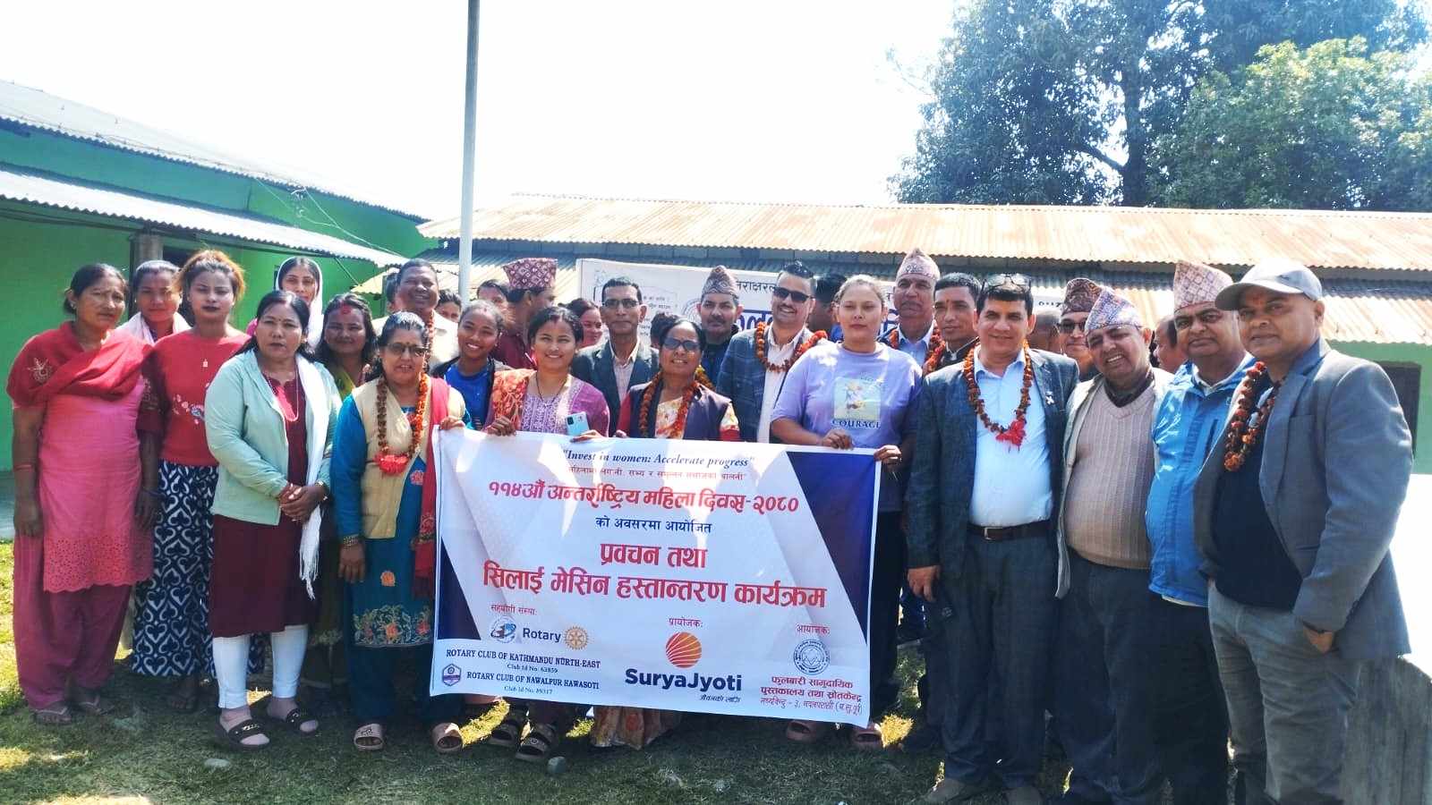 सूर्य ज्योतिलाइफद्वारा ११४ औं अन्तर्राष्ट्रिय नारी दिवसको अवसरमा महिलाका सिलाई–कटाई तालिममा मेशिन तथा सामाग्री वितरण