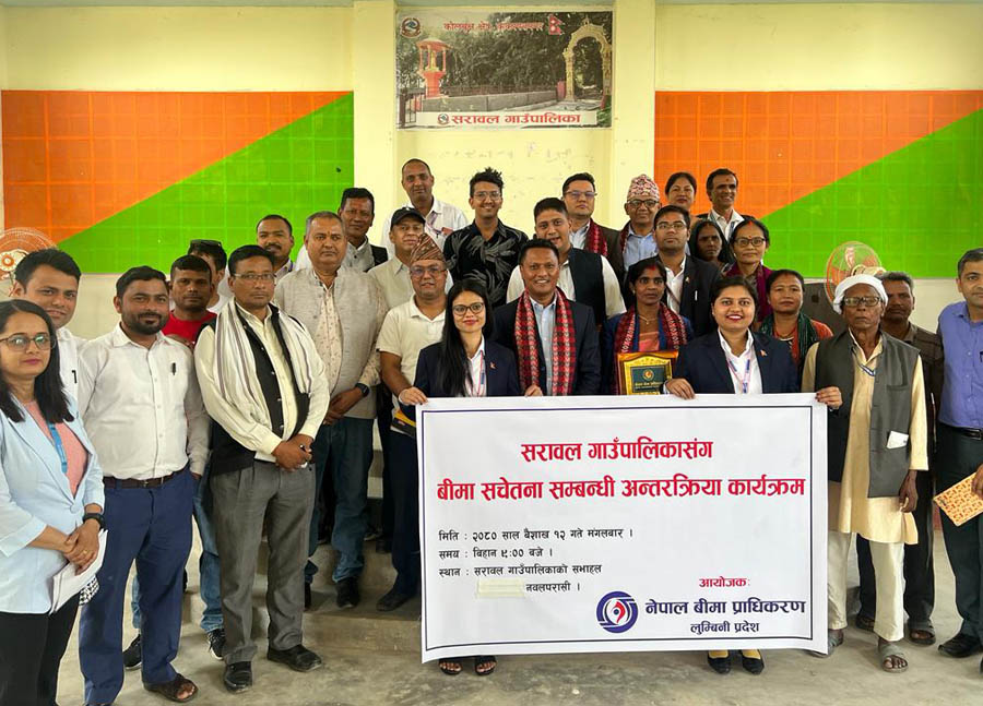 काठमाडौं । नेपाल बीमा प्राधिकरणले बीमा सचेतना कार्यक्रम सम्पन्न गरेको छ । प्राधिकरणको लुम्बिनी प्रदेश कार्यालयले आज नवलपरासी (बर्दघाट–सुस्ता पश्चिम) जिल्लाको सरावल गाउँपालिकामा बीमा सम्बन्धी सचेतनामूलक अन्तरक्रिया कार्यक्रम आयोजना गरेको हो । कार्यक्रममा प्रमुख अतिथि सरावल गाउँपालिकाका उपाध्यक्ष बासमती...