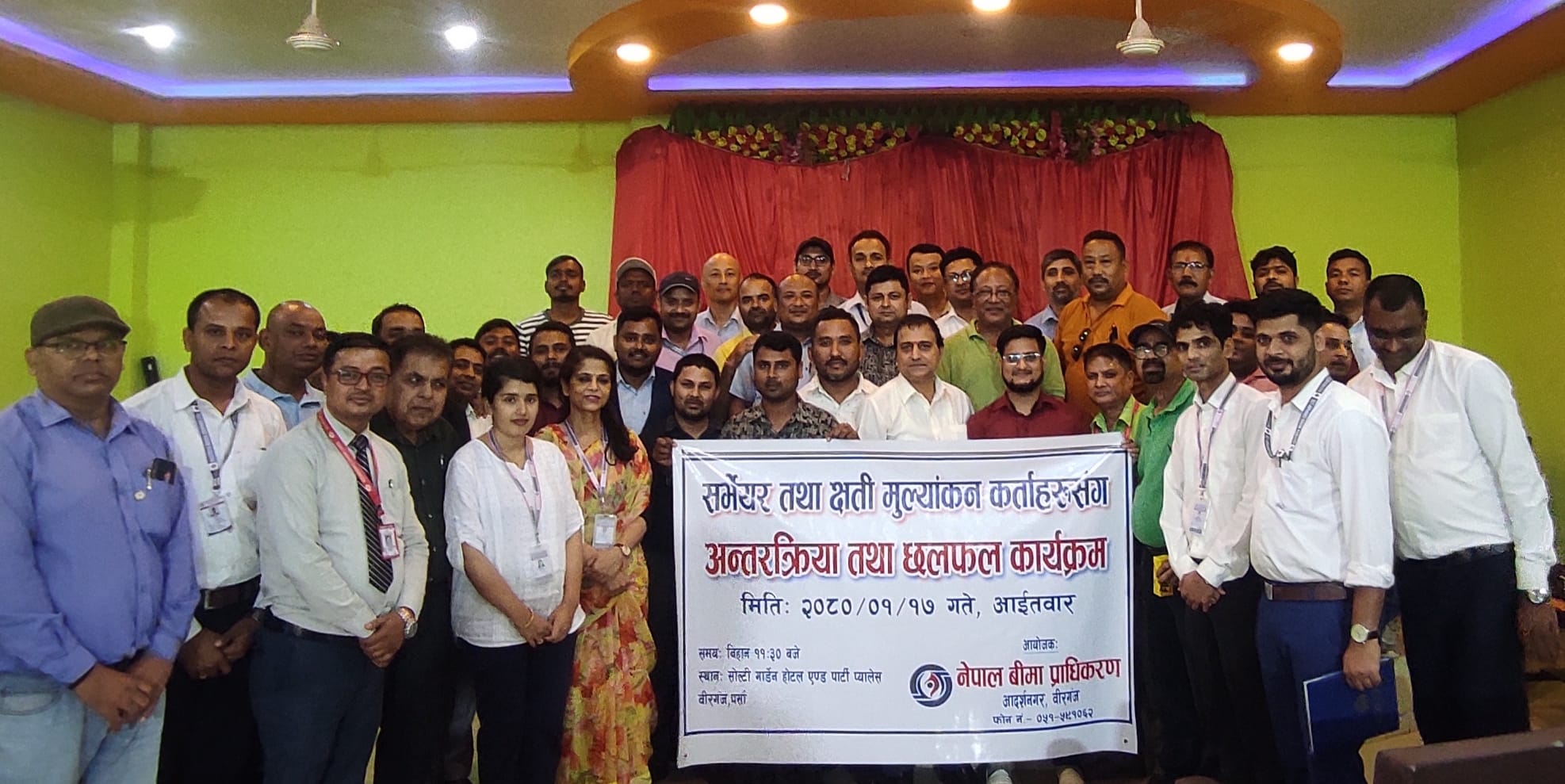 काठमाडौं । नेपाल बीमा प्राधिकरणको मधेश प्रदेश कार्यालयले बीरगन्जको पर्सामा एक कार्यक्रमका बीचमा बीमा सचेतना कार्यक्रम सम्पन्न गरेको छ । नेपाल बीमा प्राधिकरण मधेस प्रदेश द्वारा सर्भेयर र क्षति मूल्यांकनकर्ताहरु संग एक अन्तरक्रिया कार्यक्रम गरेको हो । स्थानीय सोल्टी...
