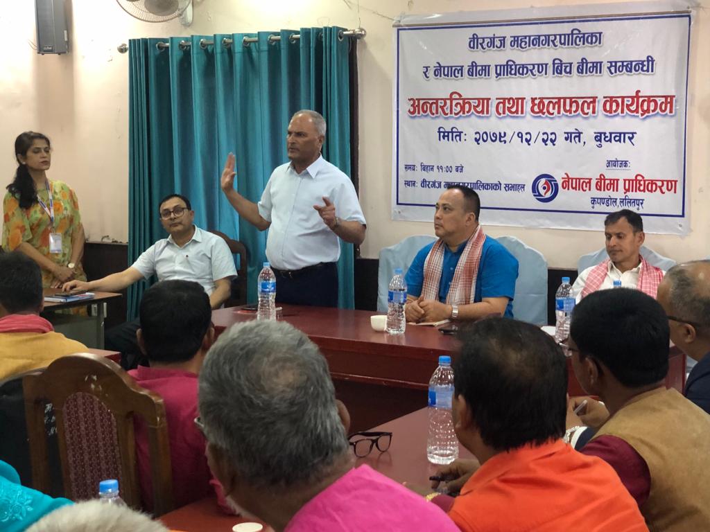चौरजहारी नगरपालिकामा बीमा सचेतना कार्यक्रम सम्पन्न, बीमा कम्पनीहरुलाई फण्डको रकम लगानी गर्न नगर प्रमुखको आग्रह