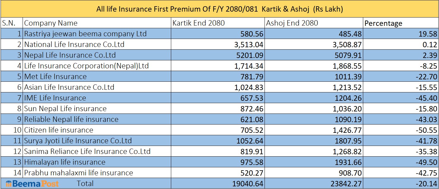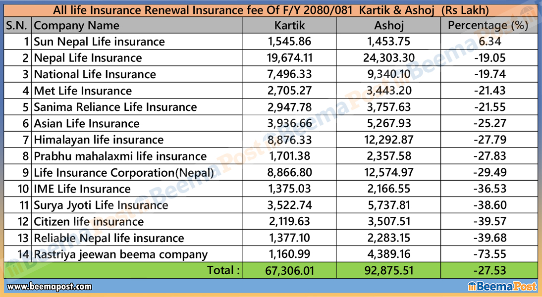 नविकरण बीमा शुल्क आर्जन १० प्रतिशतले बढ्यो, सिटिजन–आइएमई र सूर्यज्योतिको उच्च बृद्धि