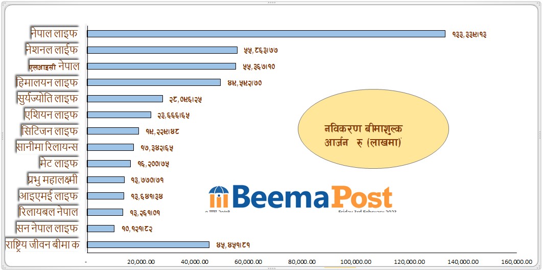जीवन बीमकको नवीकरण बीमाशुल्क आर्जन १६ प्रतिशतले बढ्यो, कुन कम्पनीको कति?
