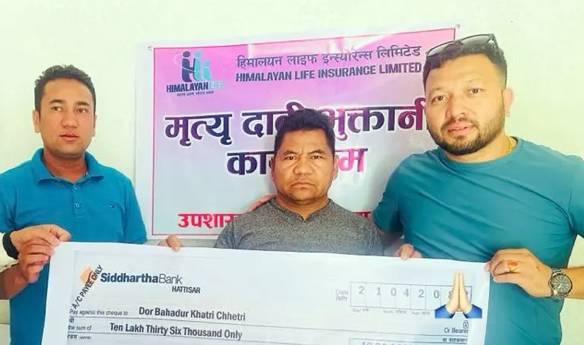 हिमालयन लाइफले गर्यो बीमितको घरमै गई बीमा दावी भुक्तानी