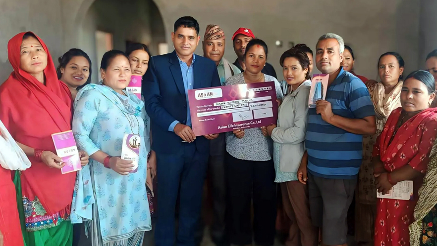 बीमापोष्टको पहलपछि गंगा बिकले एशियन लाइफबाट पाइन पाँच लाख बीमा दावी भुक्तानी