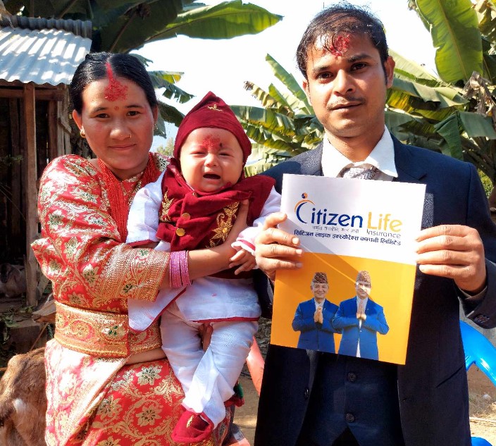 छोराको अन्नप्राशनमा अभिभावकले दिए पाँच लाखको बीमा पोलसी उपहार