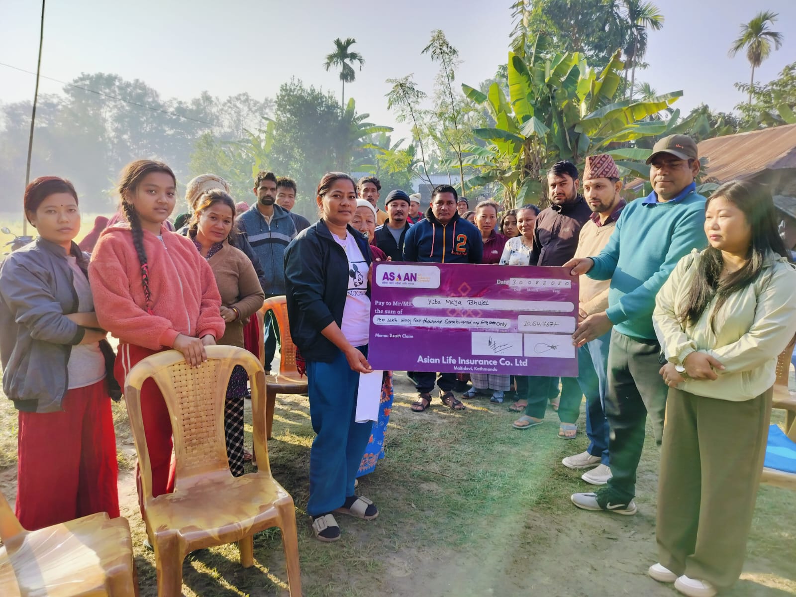 बीमितको घरमै पुगेर एशियन लाइफद्वारा बीमा दावी भुक्तानी