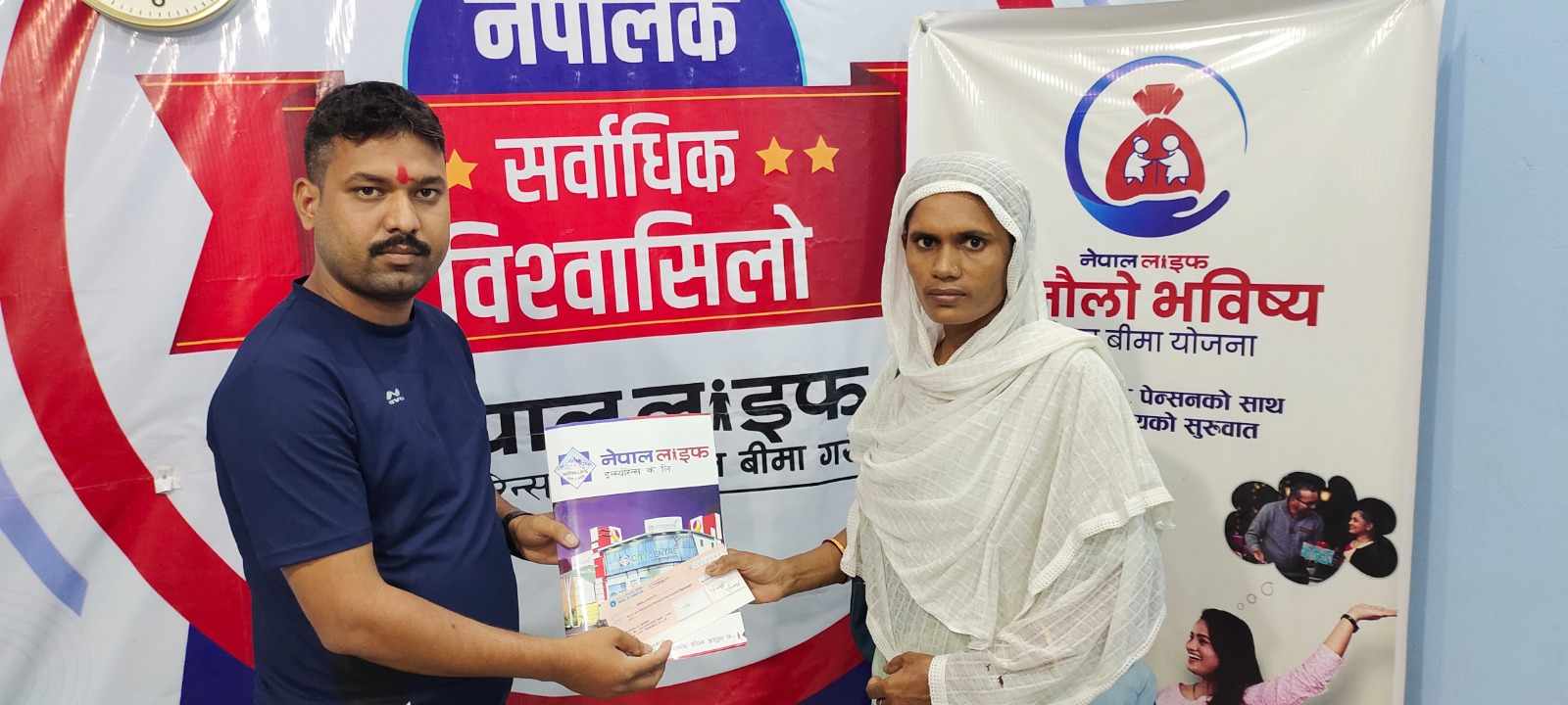 नेपाल लाइफ इन्स्योरेन्स मिर्चैया उप–शाखाद्धारा १० लाख रुपैयाँको मृत्युदाबी रकम भुक्तानी