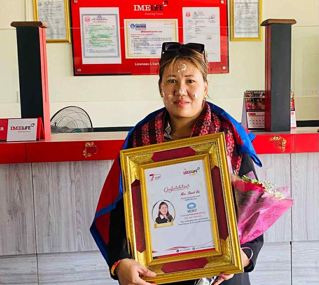 आईएमई लाइफ गठ्ठाघर शाखाबाट शान्ति राई एमडीआरटी बन्न सफल