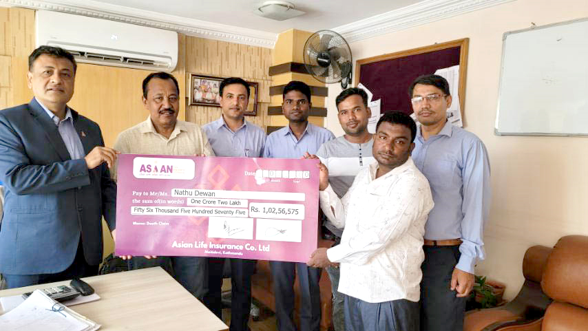 एशियन लाइफद्वारा एक करोड २ लाख रुपैयाँ दाबी भुक्तानी