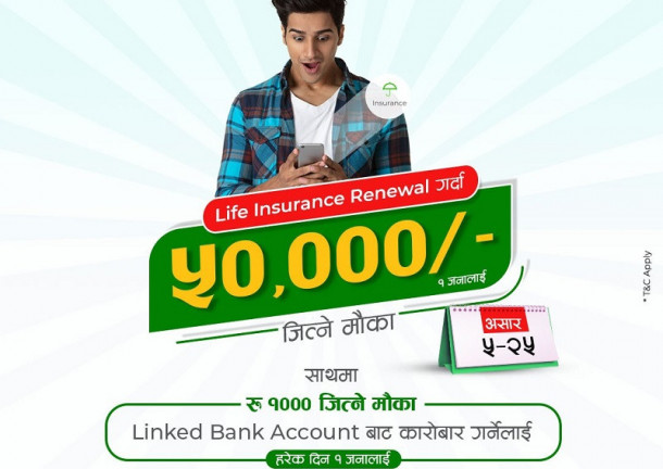इसेवामार्फत जीवन बीमा कम्पनीको नवीकरण गर्दा ५० हजार रुपैयाँसम्म जित्न सकिने