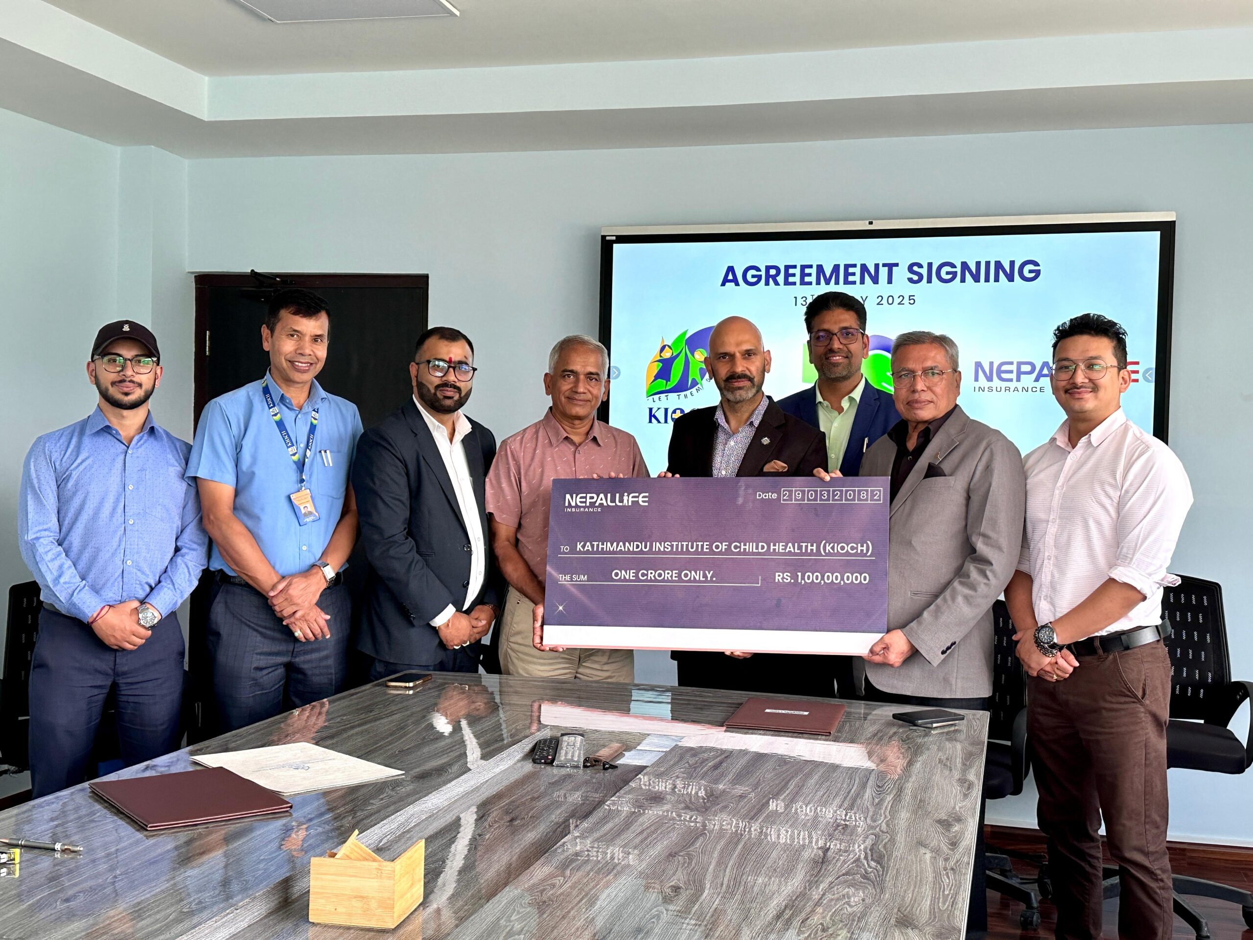 काठमाडौं । नेपाल लाइफ इन्स्योरेन्स कम्पनी लिमिटेडले बाल स्वास्थ्यमा काम गरिरहेको गैर नाफामूलक संस्था काठमाडौँ इन्स्टिच्युट अफ चाइल्ड हेल्थ (किओच)लाई काठमाडौँमा अस्पताल भवन निर्माणका लागि संस्थागत सामाजिक उत्तरदायित्व कार्यक्रम अन्तर्गत एक करोड रुपैयाँ आर्थिक सहयोग प्रदान गरेको छ ।...