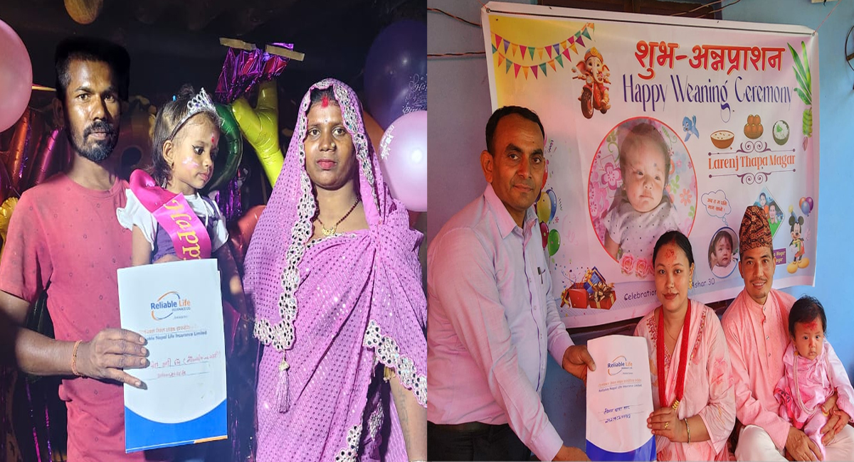 छोरोको पास्नी र छोरीको जन्मदिनमा रिलायबल लाइफको बीमा पोलिसी उपहार