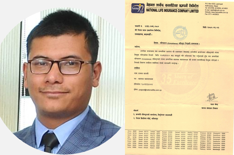 नेशनल लाइफ इन्स्योरेन्सको परिपालन अधिकृतमा प्रज्वलन सायमी नियुक्त