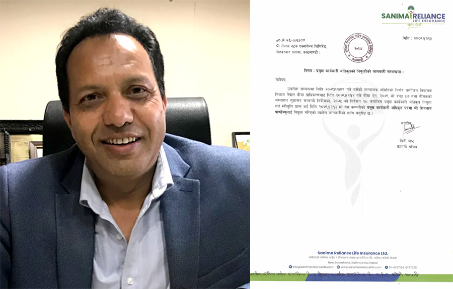 काठमाडौं । सानिमा रिलायन्स लाइफ इन्स्योरेन्स कम्पनी लिमिटेडको प्रमुख कार्यकारी अधिकृत (सिइओ)मा शिवनाथ पाण्डे नियुक्त भएका छन् । साविक सानिमा लाइफ इन्स्योरेन्स र रिलायन्स लाइफ इन्स्योरेन्सबीच एकआपसमा गाभिएपश्चात् बनेको ‘सानिमा रिलायन्स लाइफ इन्स्योरेन्स’ कम्पनीको सिइओमा पाण्डे नियुक्त भएका हुन्...