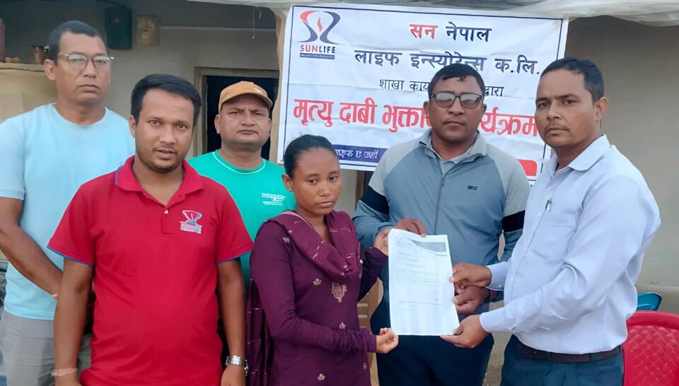 मृतकको परिवारलाई सन नेपाल लाइफले दियो ११ लाख ४४ हजार रुपैयाँ दाबी भुक्तानी
