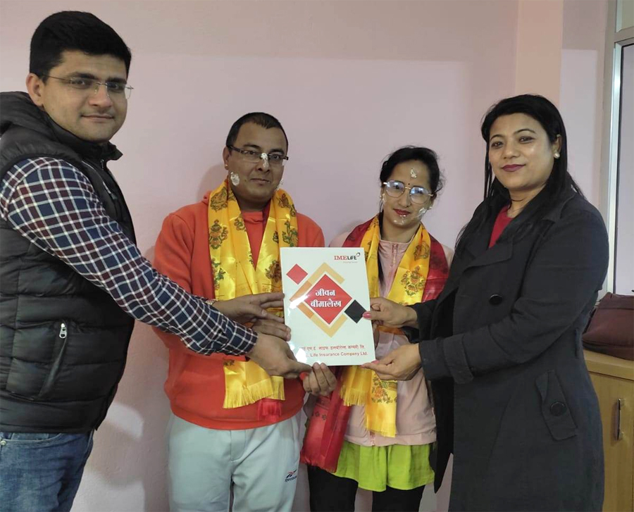 संचिताले श्रीमानको जन्मदिनमा दिइन् आइएमई लाइफको बीमा पोलिसी उपहार