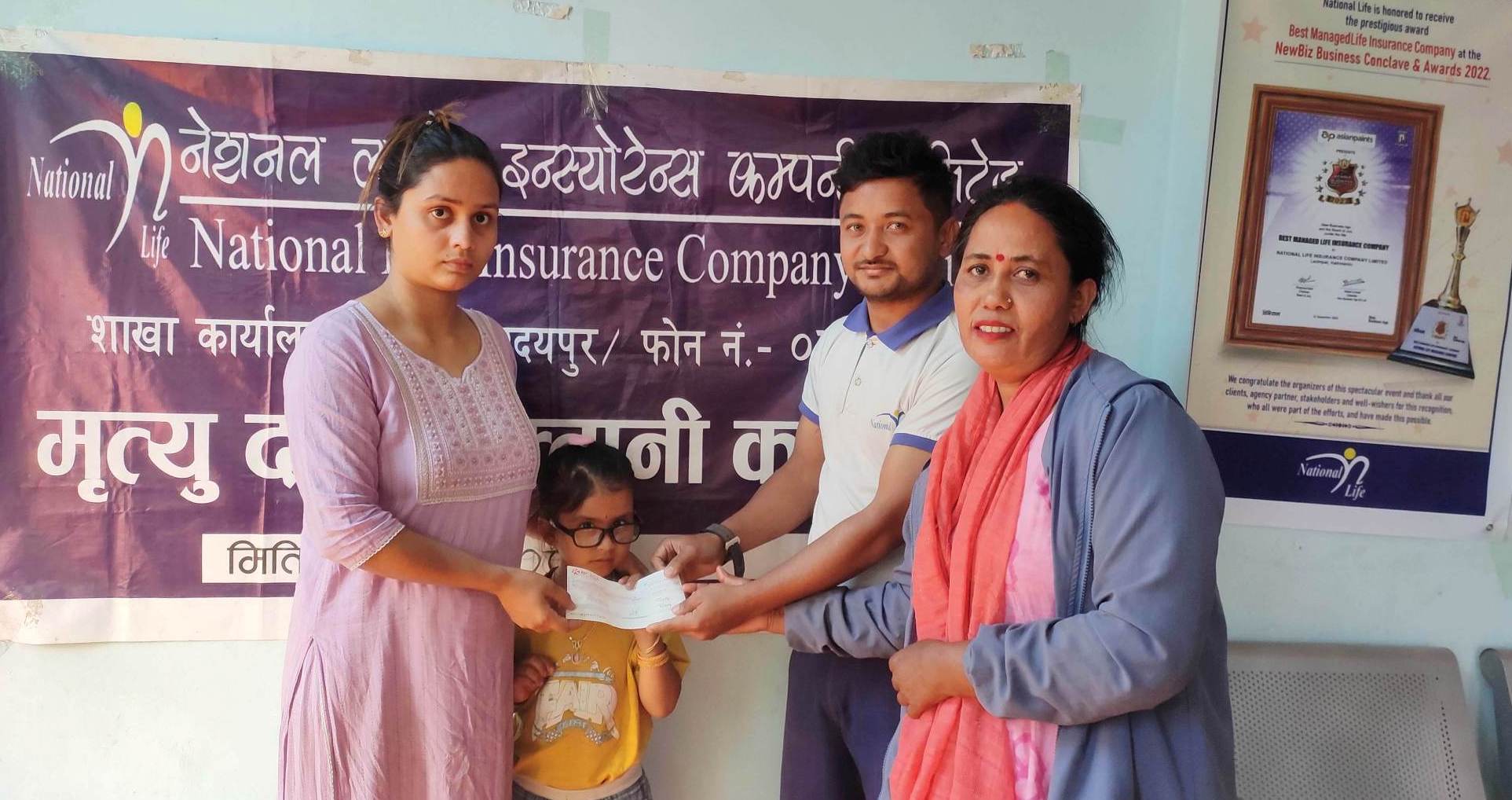 नेशनल लाइफ इन्स्योरेन्सद्वारा बीमा दाबी वापत १० लाख रुपैयाँ भुक्तानी