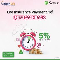 इसेवा मार्फत आज सिटिजन लाइफले बीमा शुल्क बुझाउँदा झ्याप्प क्यासब्याक पाइने