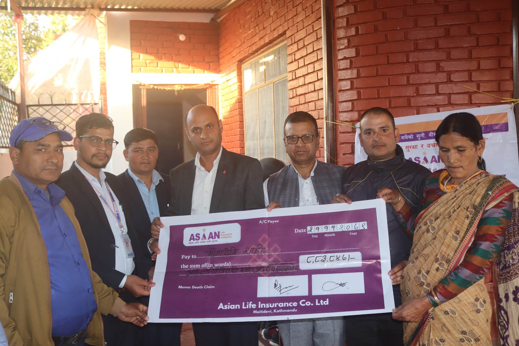 एशियन लाइफद्वारा ८ लाख रुपैयाँको बीमा दावी भुक्तानी