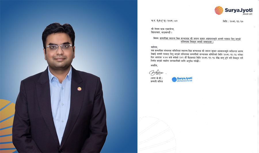 सूर्यज्योति लाइफ इन्स्योरेन्सका संचालक अग्रवालद्वारा राजिनामा