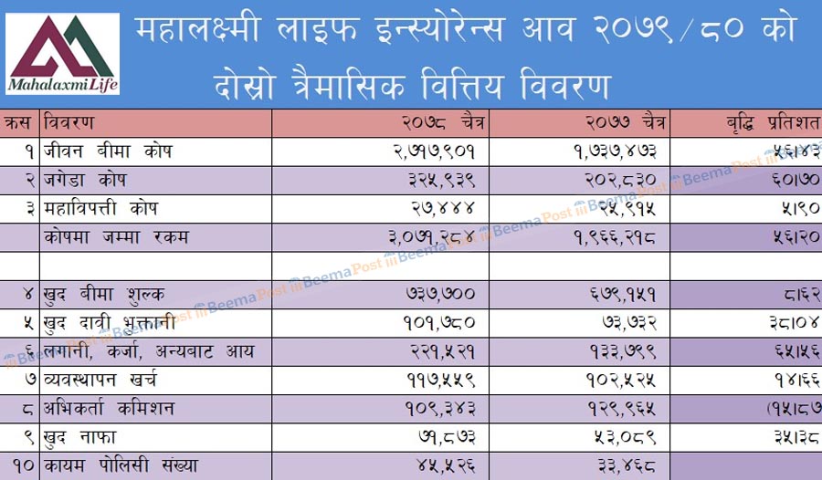 महालक्ष्मी लाइफको जीवन बीमा कोष ५६% ले बढ्यो, ७३ करोड रुपैयाँमाथि बीमा शुल्क आर्जन