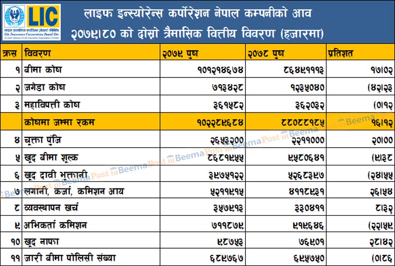 एलआइसी नेपालको बीमा कोषमा एक खर्ब संचिती, खुद नाफा २८% ले बढ्यो