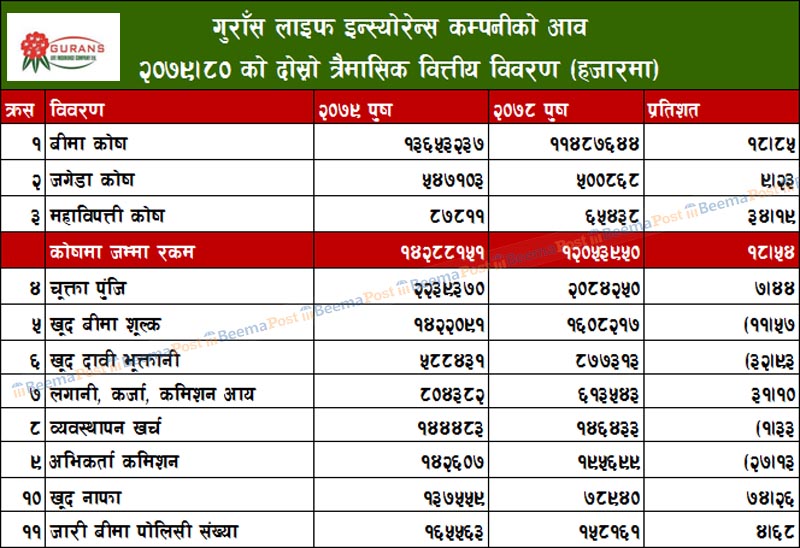 गुराँस लाइफ इन्स्योरेन्सको जीवन बीमा कोषमा साढे १३ अर्ब संचिती, आय बढ्दा मुनाफा ७४% ले बृद्धि