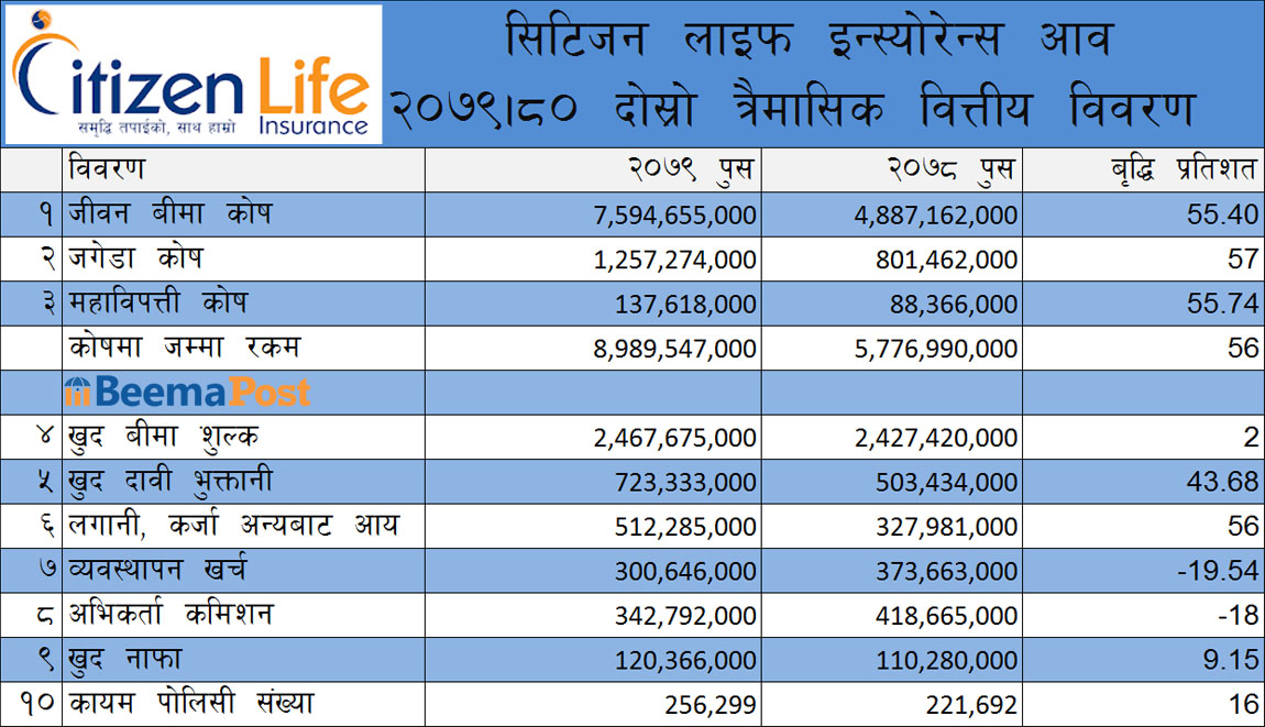 दोस्रो त्रैमासमा सिटिजन लाइफको उत्साहप्रद प्रगति, साढे सात अर्बको जीवन बीमा कोष, अन्य सूचांक कस्तो ?