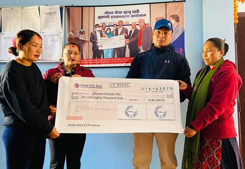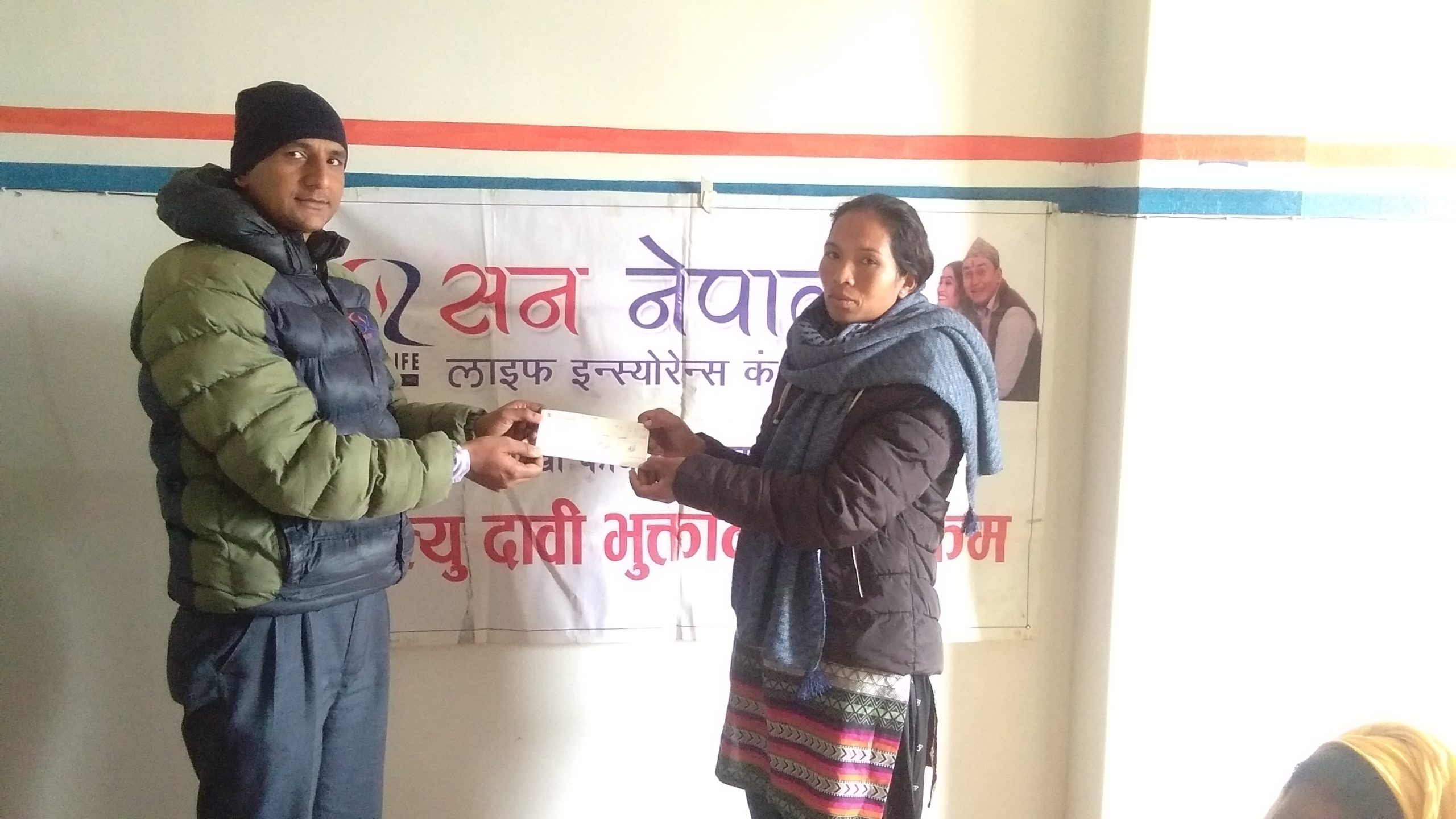 सन नेपाल लाइफ इन्स्योरेन्सद्वारा १४ लाख रुपैयाँको बीमा दावी भुक्तानी