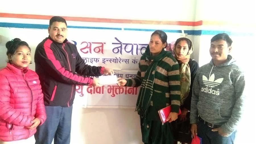 सन नेपाल लाइफद्धारा १४ लाख रुपैयाँ बीमा दाबी भुक्तानी